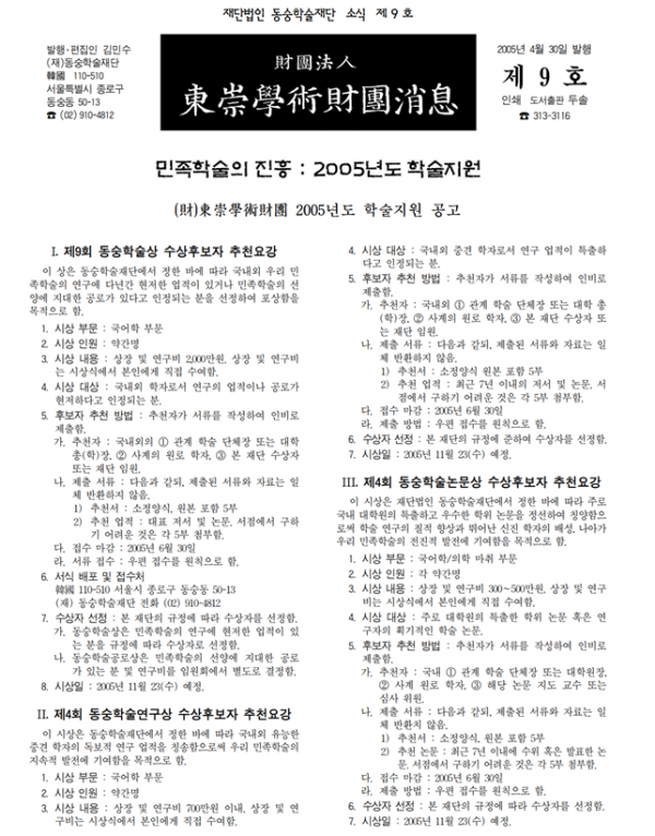 재단 소식지 동숭학술재단 민족학술의 진흥